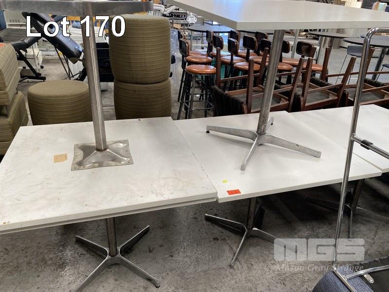 5 x DINING TABLES, 90 x 90cm, WHITE LAMINATE