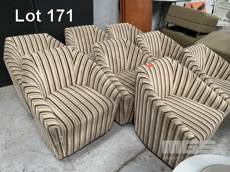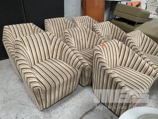 8 x LOUNGE CHAIRS, STRIPED FABRIC