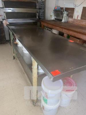 BAKERS PREP BENCH, STAINLESS STEEL TOP, 2440 (L) x 780 (D) x 940mm (H) WITH 1 x STAINLESS STEEL SHELF