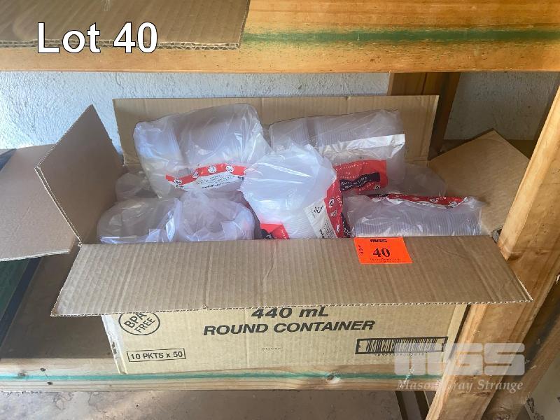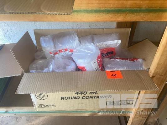 CARTON ROUND PLASTIC CONTAINERS, 440mm PLUS ASSORTED CUPS AND LIDS .