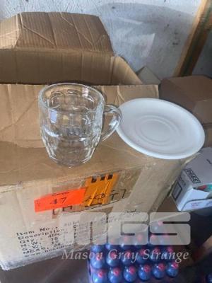 28 x DIPPLE GLASS MUGS, 285ml, NEW & 20 x WHITE SAUCERS NEW.