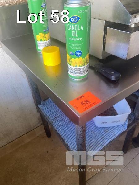 STAINLESS STEEL TOP INFILL BENCH WITH SPLASHBACK, STEEL FRAME 650 (D) x 600mm (W)