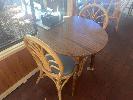 2 x ROUND TIMBER LAMINATE CAFE TABLE, 750mm, 4 LEG & 4 x TIMBER CHAIRS