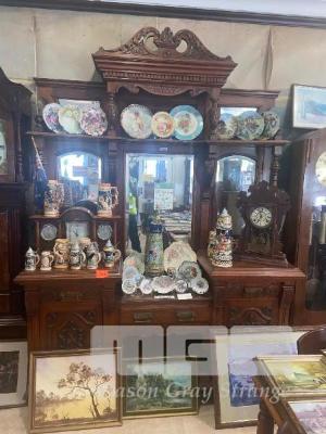 VICTORIAN WALNUT SIDEBOARD, 3 x MIRRORS, 3 x DRAWERS, 2 x CUPBOARDS, 1825 (L) x 570 (D) x 2520mm (H) APPROX