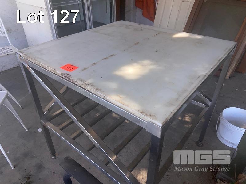 LARGE CUTTING BENCH, STAINLESS STEEL FRAME 900 x 900 x 20mm NYLON TOP