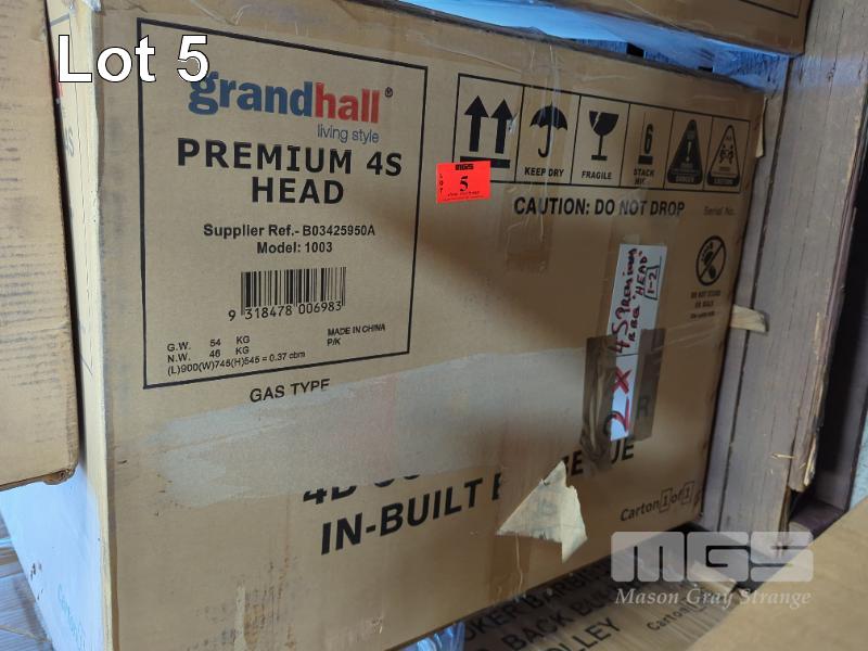 GRANDHALL PREMIUM 4S STAINLESS STEEL IN-BUILT COVERED GAS BBQ ** HEAD UNIT ONLY ** FEATURES STAINLESS STEEL HOOD WITH 4-BURNERS AND ELECTRONIC IGNITION. MODEL 1003 NEW IN BOX.
