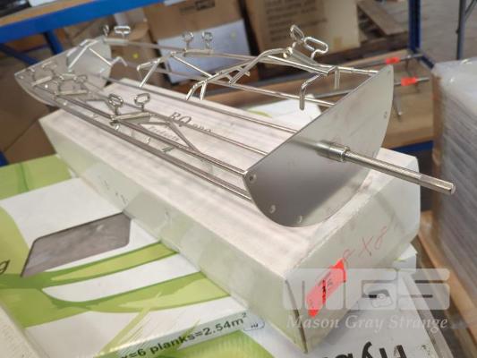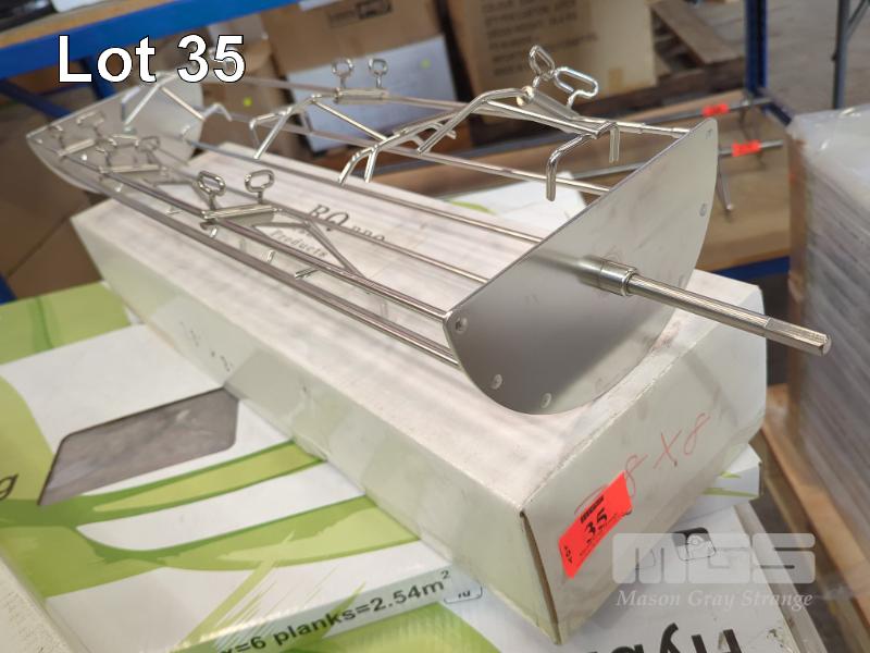 EZQ EIGHT INCH ROTISSERIE CRADLE - LARGE (28 INCH LONG) 28 X 8" STAINLESS STEEL ROTISSERIE CRADLE, HANDLE, CLAW CLAMPS & CLAWS. * E-Z QUE ROTISSERIE BASKET SYSTEM * * NO MOTOR * ORP $399.00 NO GST