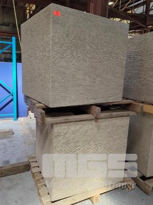 2 X VERY LARGE CUBIC PLANTER POTS. 910 X 910 X 840 MM (W D H). COLOUR WHITE BEIGE.