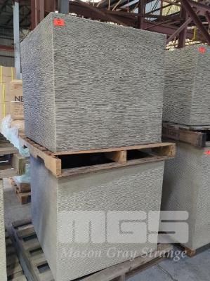 2 X VERY LARGE CUBIC PLANTER POTS. 910 X 910 X 840 MM (W D H). COLOUR WHITE BEIGE.