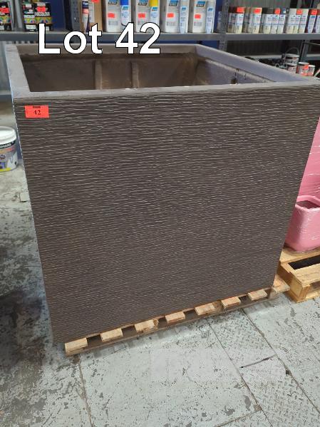 1 X GIANT CUBIC PLANTER POT. 1,060 X 1,060 X 980 MM (W D H). COLOUR EARTH.