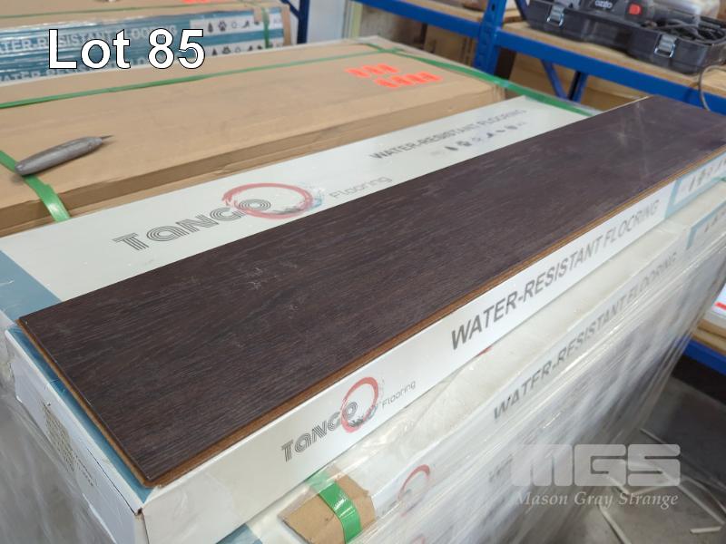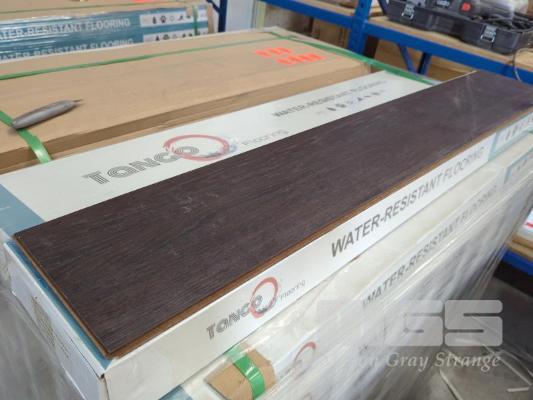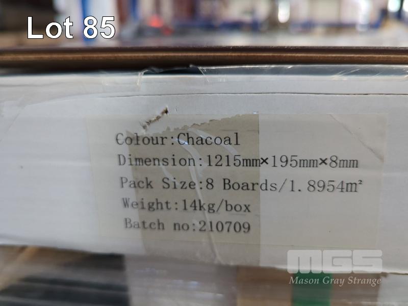 10 PACKS OF 8.0 MM WATER-RESISTANT LAMINATE FLOORING IN COLOUR CHARCOAL. SIZE 1,215 X 195 X 8 MM (W D H). 1.895 M2 PER BOX. 18.95 M2 TOTAL. ALL NEW PACKS.