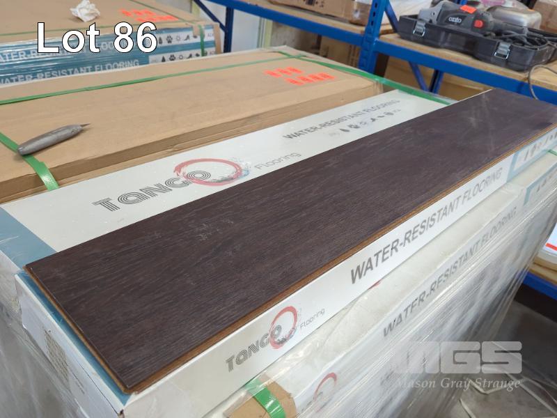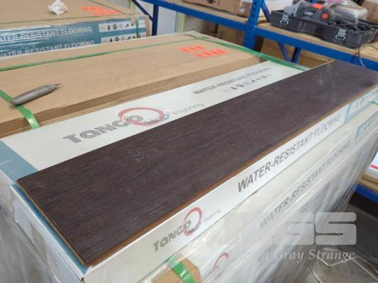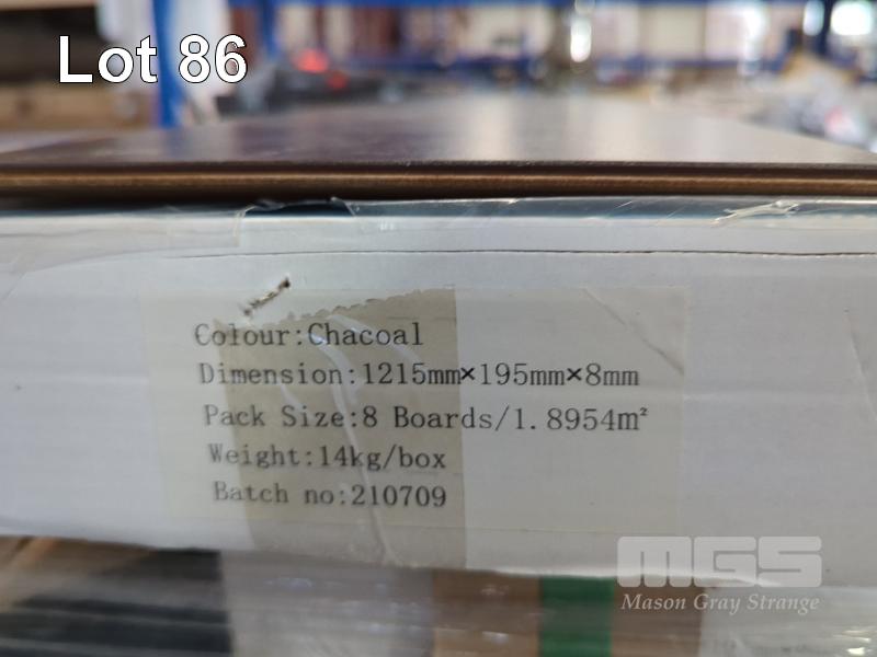10 PACKS OF 8.0 MM WATER-RESISTANT LAMINATE FLOORING IN COLOUR CHARCOAL. SIZE 1,215 X 195 X 8 MM (W D H). 1.895 M2 PER BOX. 18.95 M2 TOTAL. ALL NEW PACKS.