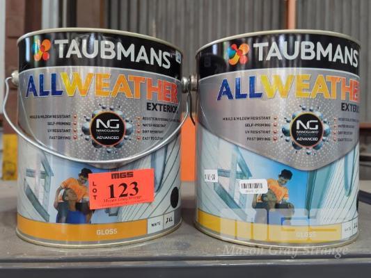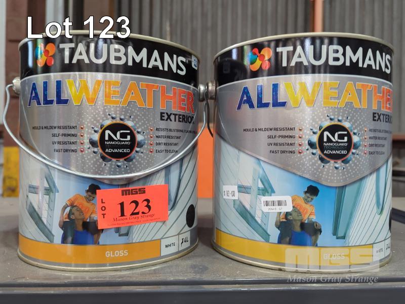 2 X 4.0 L TINS TAUBMANS ALL WEATHER EXTERIOR GLOSS PAINT - WHITE.