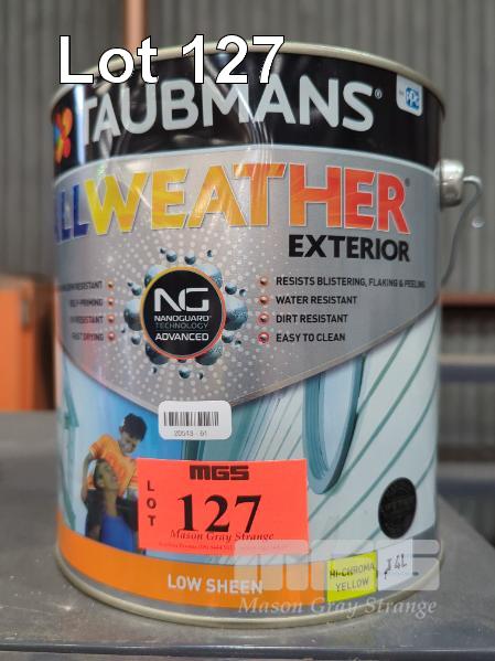 1 X 4.0 L TIN TAUBMANS ALL WEATHER EXTERIOR LOW SHEEN PAINT - HI-CHROMA YELLOW.