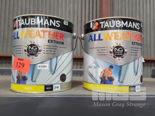 2 X 4.0 L TINS TAUBMANS ALL WEATHER EXTERIOR GLOSS PAINT - BLACK.