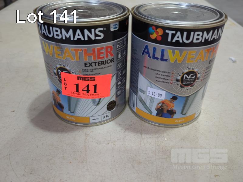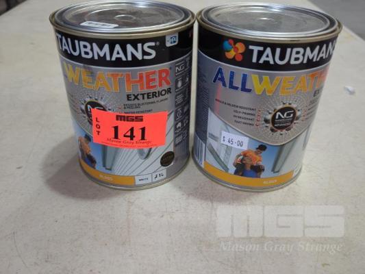 2 X 1.0 L TINS TAUBMANS ALL WEATHER EXTERIOR GLOSS PAINT - WHITE.