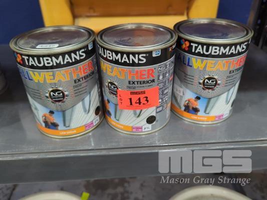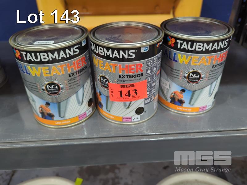 3 X 1.0 L TINS TAUBMANS ALL WEATHER EXTERIOR LOW SHEEN PAINT - HI-CHROMA RED.