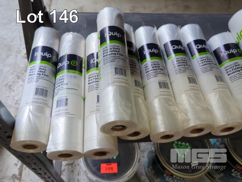 9 X IQUIP HEAVY DUTY PRE-FOLDED MASKING FILM 2.7 X 27.4 M.