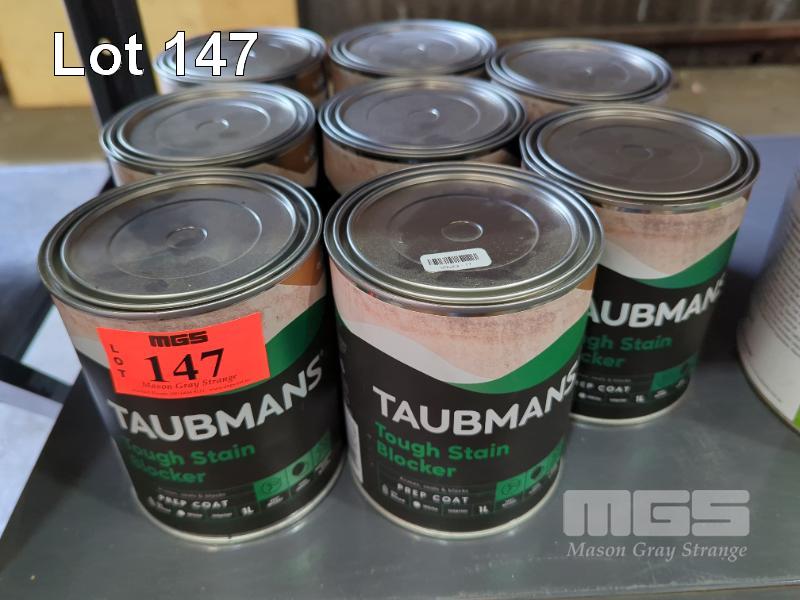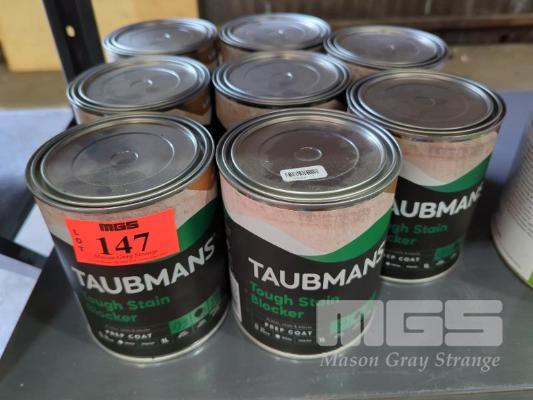 8 X TAUBMANS 1.0 L "TOUGH STAIN BLOCKER" WHITE INTERIOR PREP COAT PAINT. OIL BASED.