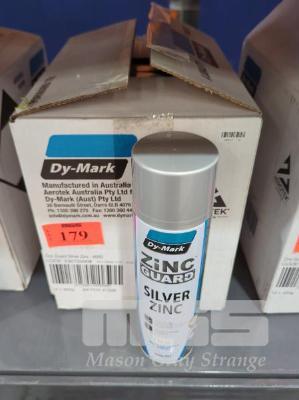 12 X 400 G SPRAY CANS DY-MARK ZINC GUARD PRIMER TOPCOAT SPRAY PAINT - METALLIC SILVER ZINC (1 X CARTON)