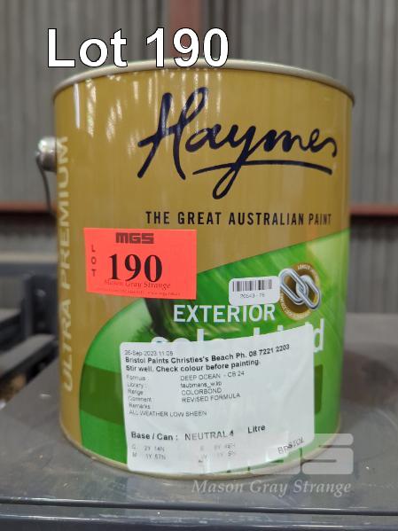 1 X 4.0 L TIN HAYMES EXPRESSIONS INTERIOR LOW SHEEN PAINT - WHITE.