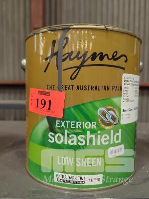 1 X 4.0 L TIN HAYMES SOLARSHEILD EXTERIOR LOW SHEEN PAINT - EXTRA DARK TINT.