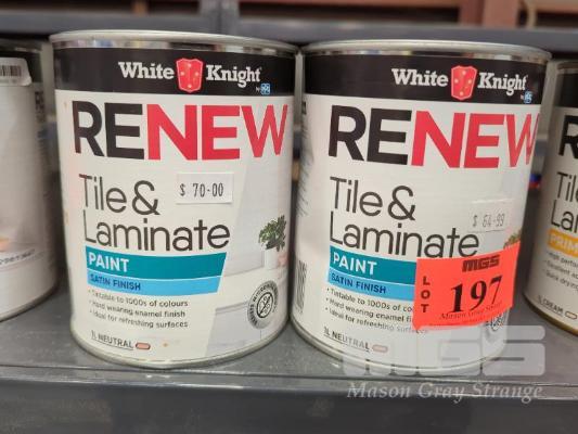 2 X 1.0 L TINS WHITE KNIGHT RENEW TILE & LAMINATE PAINT, SATIN FINISH - NEUTRAL.
