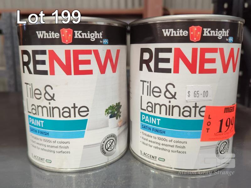 2 X 1.0 L TINS WHITE KNIGHT RENEW TILE & LAMINATE PAINT, SATIN FINISH - ACCENT.