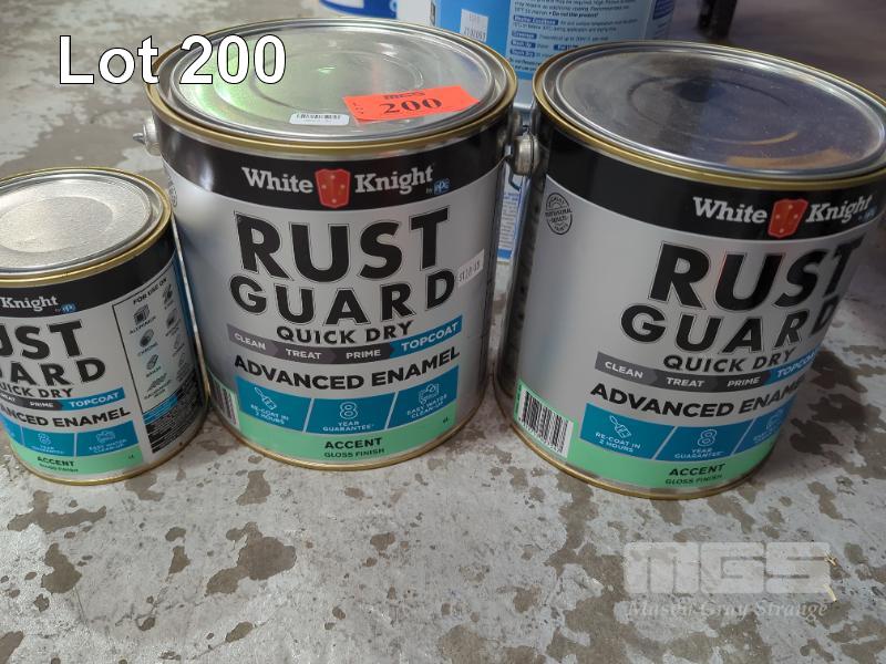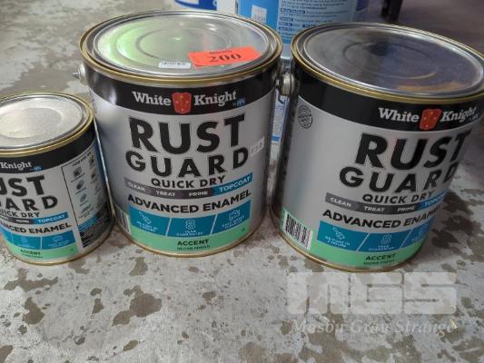 2 X 4.0 L AND 1 X 1.0 L TINS WHITE KNIGHT RUST GUARD ADVANCED ENAMEL TOPCOAT PAINT - GLOSS ACCENT.