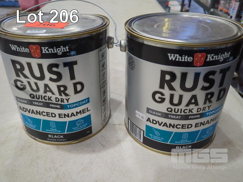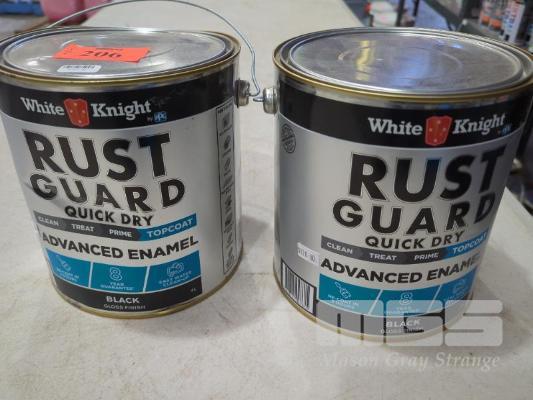 2 X 4.0 L TINS WHITE KNIGHT RUST GUARD ADVANCED ENAMEL TOPCOAT PAINT - GLOSS BLACK.