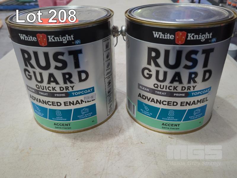 2 X 4.0 L TINS WHITE KNIGHT RUST GUARD ADVANCED ENAMEL TOPCOAT PAINT - SATIN FINISH ACCENT.