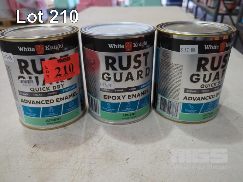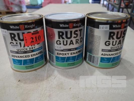 2 X 1.0 L TINS WHITE KNIGHT RUST GUARD ADVANCED ENAMEL TOPCOAT PAINT - SATIN FINISH ACCENT. 1 X 1.0 L TINS WHITE KNIGHT RUST GUARD EPOXY ENAMEL TOPCOAT PAINT - GLOSS ACCENT.