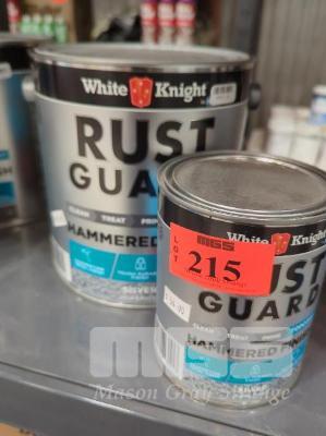 1 X 4.0 L AND 1 X 1.0 L WHITE KNIGHT RUST GUARD HAMMERED FINISH TOP PAINT - SILVERL GLOSS.