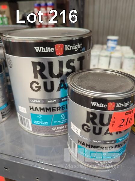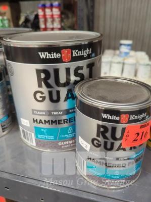 1 X 4.0 L AND 1 X 1.0 L WHITE KNIGHT RUST GUARD HAMMERED FINISH TOP PAINT - GUNMETAL GLOSS.