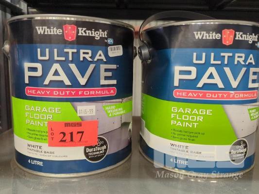 2 X 4.0 L TINS WHITE KNIGHT ULTRA PAVE HEAVY DUTY GARAGE FLOOR PAINT - WHITE TINTABLE BASE