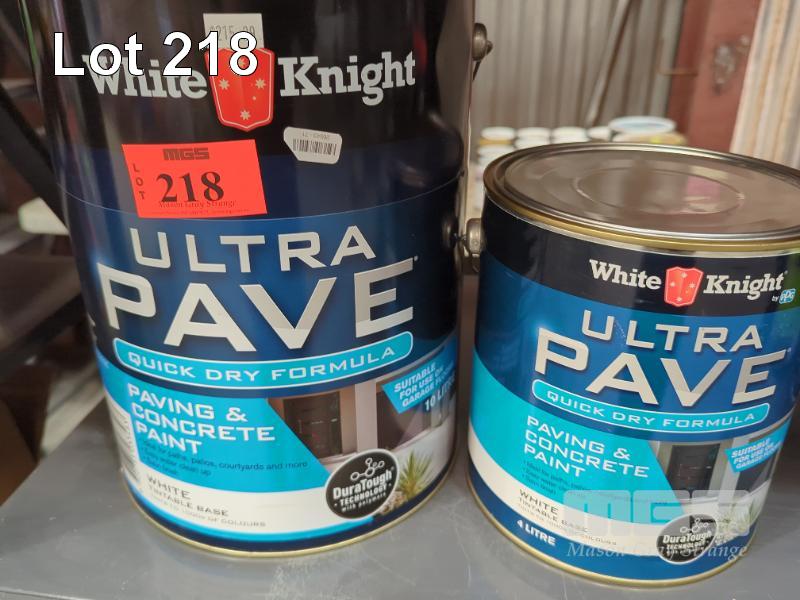 1 X 10.0 L TIN AND 1 X 4.0 L TIN WHITE KNIGHT ULTRA PAVE PAVING AND CONCRETE PAINT - WHITE TINTABLE BASE.