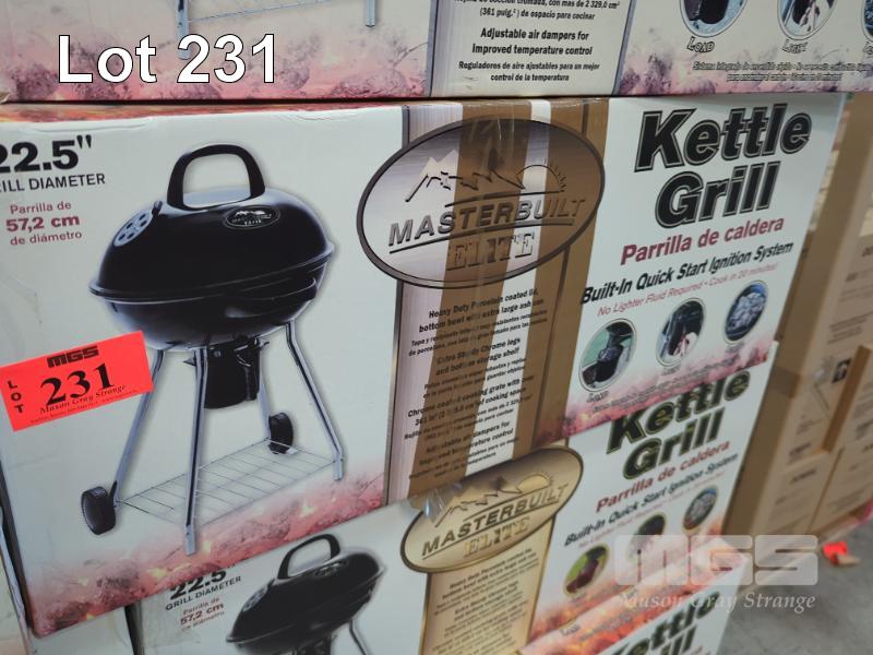 MASTERBUILT ELITE 22.5" KETTLE CHARCOAL GRILL * 57 CM DIAMETER GRILL ** BUILT-IN QUICK START IGNITION SYSTEM. EXTRA STURDY CHROME LEGS WITH STORAGE SHELF. MODEL 20040311 NEW IN BOX. ORP $299