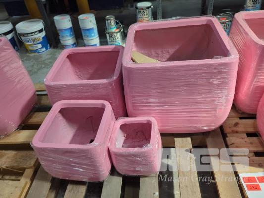 2 X SETS OF 4 CONTEMPORARY PLANTER POTS (NEW) STYLE MONARCH SQUAT COLOUR PINK SIZES... 2 @ 550 X 550 X 480 MM 2 @ 430 X 430 X 380 MM 2 @ 330 X 330 X 290 MM 2 @ 230 X 230 X 200 MM RRP $299.99