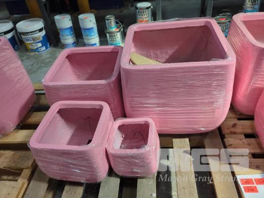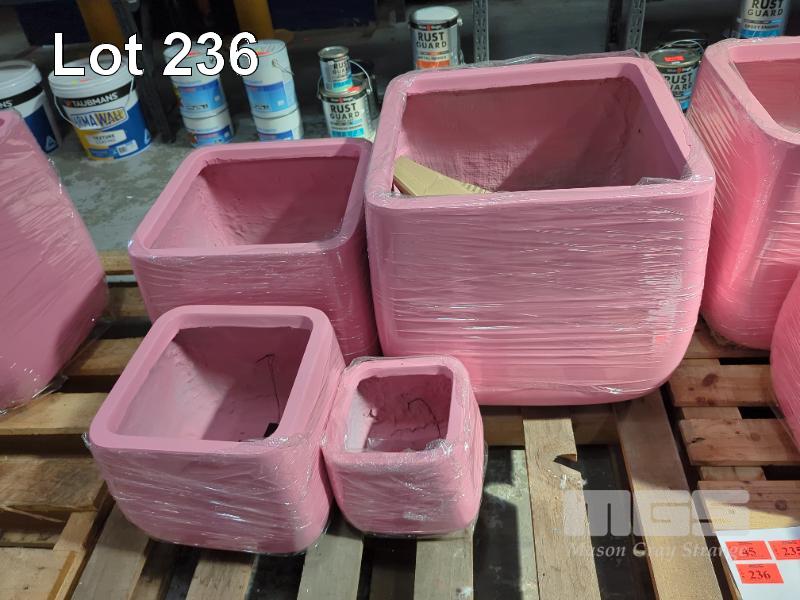 2 X SETS OF 4 CONTEMPORARY PLANTER POTS (NEW) STYLE MONARCH SQUAT COLOUR PINK SIZES... 2 @ 550 X 550 X 480 MM 2 @ 430 X 430 X 380 MM 2 @ 330 X 330 X 290 MM 2 @ 230 X 230 X 200 MM RRP $299.99