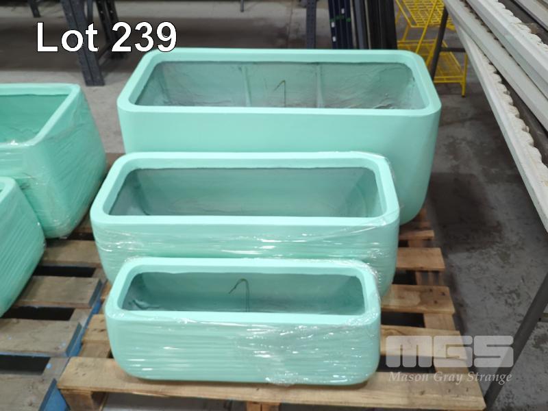2 X SETS OF 3 CONTEMPORARY PLANTER POTS (NEW) STYLE MONARCH TROUGH COLOUR BLUE SIZES... 2 @ 970 X 470 X 470 MM 2 @ 800 X 340 X 340 MM 2 @ 650 X 230 X 240 MM RRP $379.99
