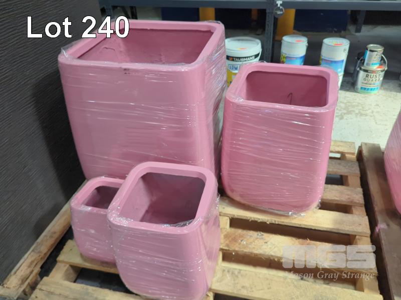 2 X SETS OF 4 CONTEMPORARY PLANTER POTS (NEW) STYLE MONARCH TALL COLOUR BLUE SIZES... 2 @ 550 X 550 X 660 MM 2 @ 420 X 420 X 500 MM 2 @ 310 X 310 X 370 MM 2 @ 210 X 210 X 260 MM RRP $349.99