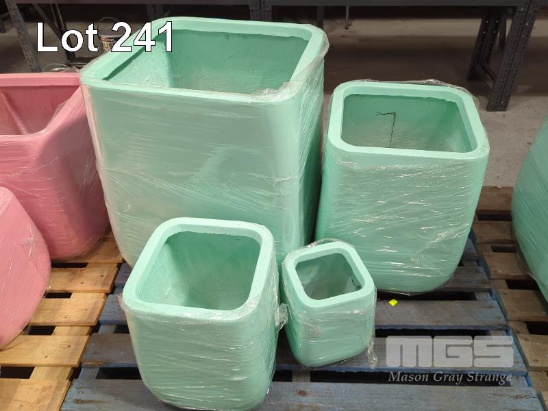 2 X SETS OF 4 CONTEMPORARY PLANTER POTS (NEW) STYLE MONARCH TALL COLOUR PINK SIZES... 2 @ 550 X 550 X 660 MM 2 @ 420 X 420 X 500 MM 2 @ 310 X 310 X 370 MM 2 @ 210 X 210 X 260 MM RRP $349.99