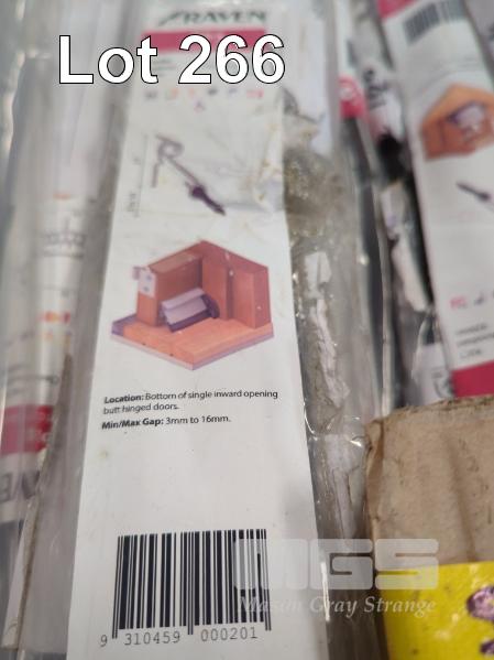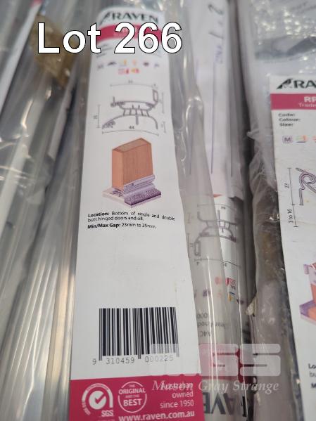DOOR SEALCOMPONENTS FROM TRADE PACKS, 30 ITEMS APPROX. 20 @ RAVEN RP3 (R3CT) 920 MM ANODISED CLEAR. 8 @ RAVEN RP4 (R4MT) 926 MM MILL FINISH. 1 @ BOX OF DOOR STOPS 1 @ GENERIC DOOR SEAL