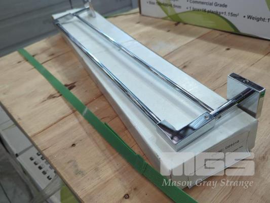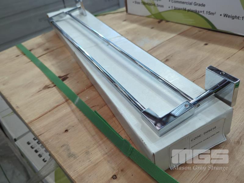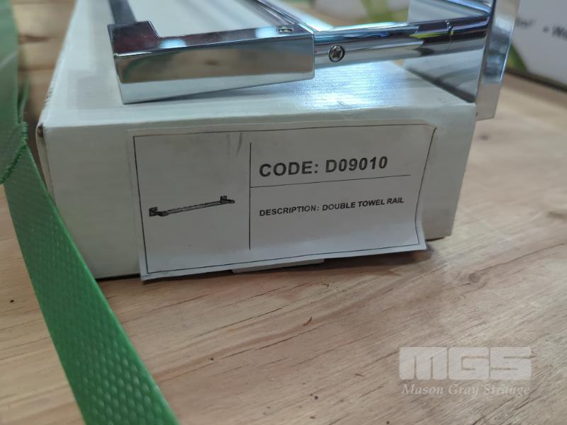10 X WALL MOUNT DOUBLE TOWEL RAILS, CHROME, WITH FITTINGS. ALL NEW (1 X CARTON).