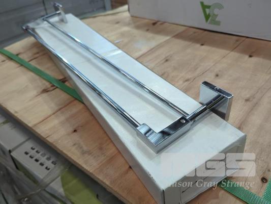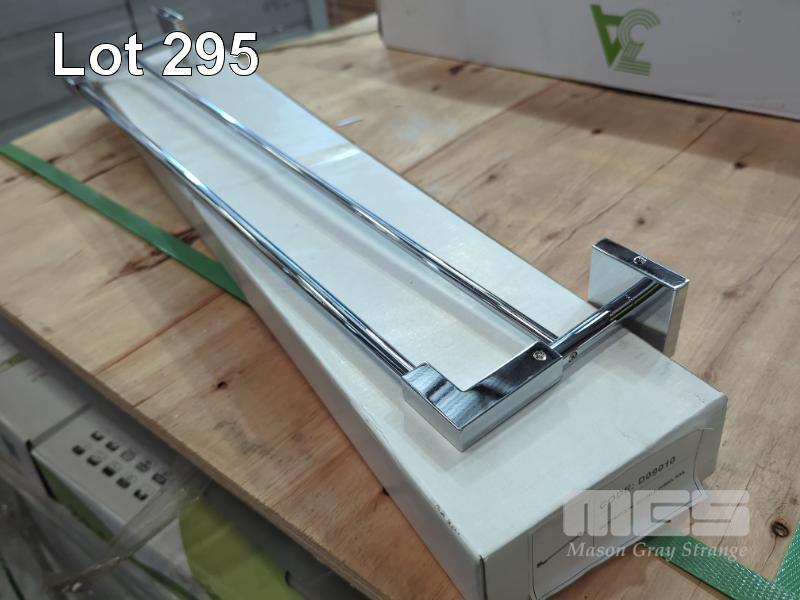 10 X WALL MOUNT DOUBLE TOWEL RAILS, CHROME, WITH FITTINGS. ALL NEW (1 X CARTON).