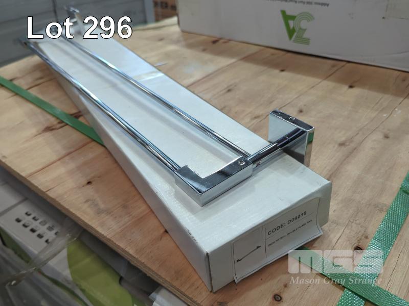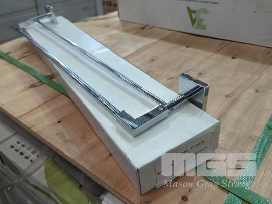 10 X WALL MOUNT DOUBLE TOWEL RAILS, CHROME, WITH FITTINGS. ALL NEW (1 X CARTON).