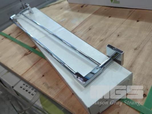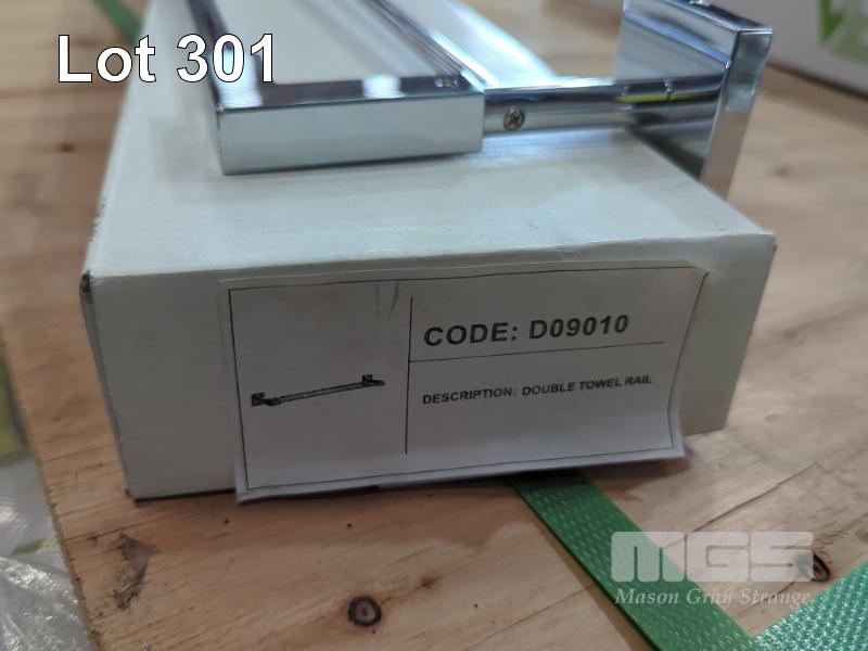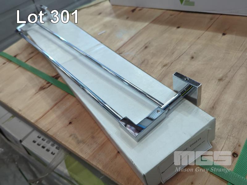 10 X WALL MOUNT DOUBLE TOWEL RAILS, CHROME, WITH FITTINGS. ALL NEW (1 X CARTON).