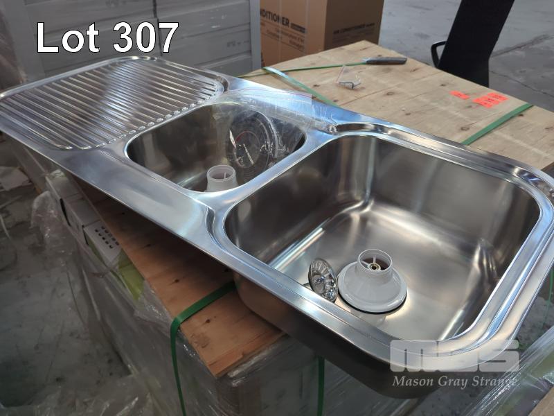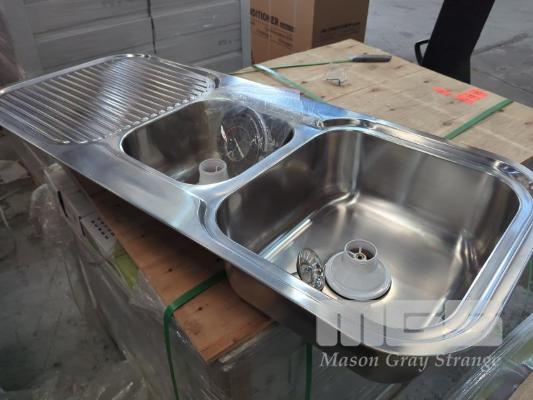 1 X DOUBLE BASIN STAINLESS STEEL SINK. ALL NEW.