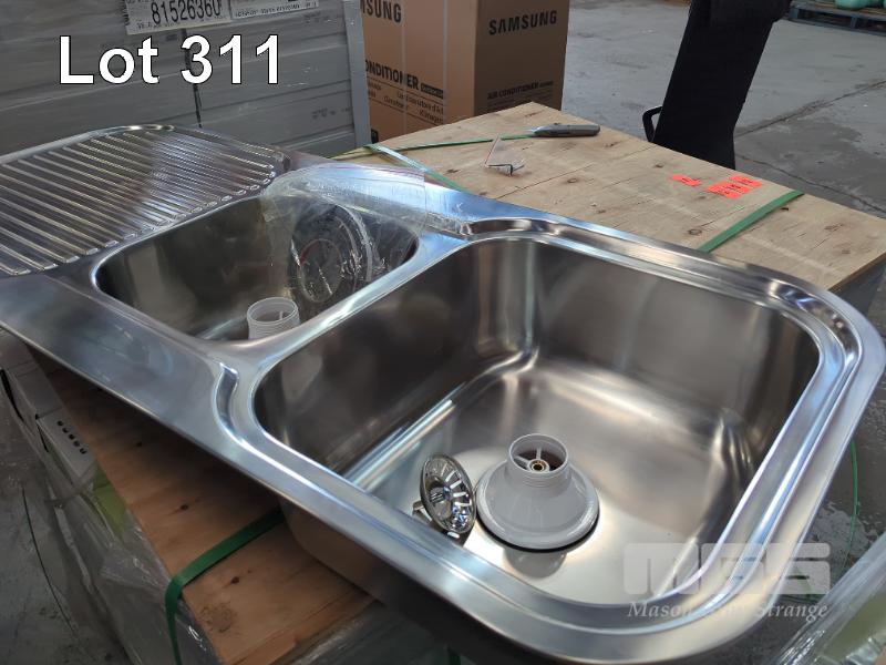 1 X DOUBLE BASIN STAINLESS STEEL SINK. ALL NEW.