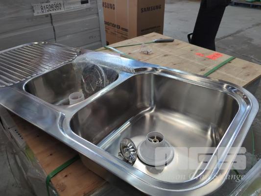 1 X DOUBLE BASIN STAINLESS STEEL SINK. ALL NEW.